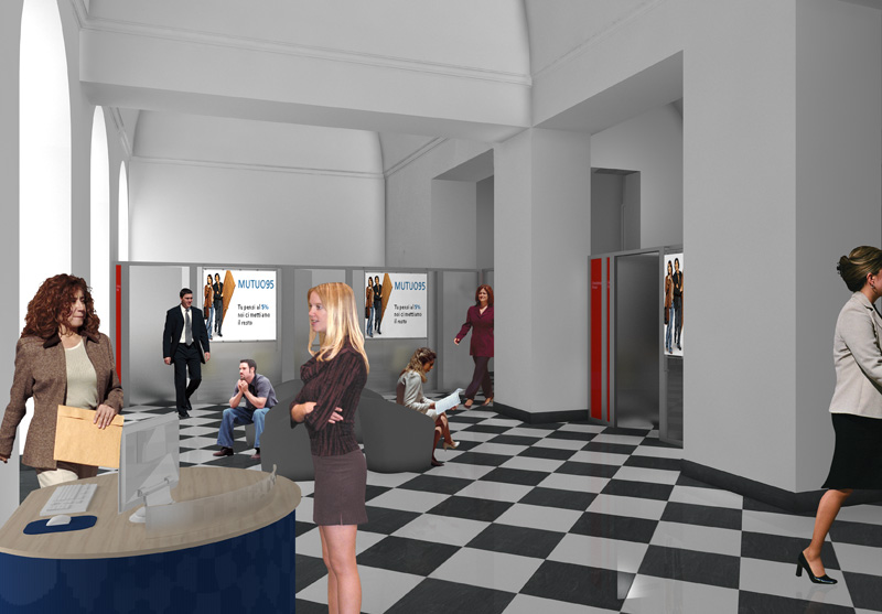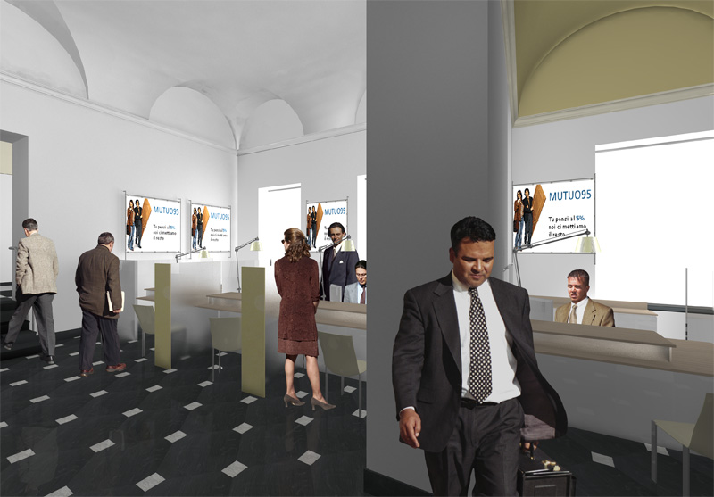 Modello 3D e rendering del progetto "Automa" per la banca Credito Emiliano - Courtesy of Frigerio Design Group S.r.l.